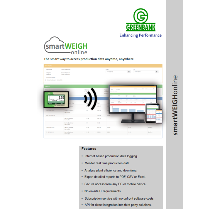 The Greenbank Group (United Kingdom) - The smartWEIGHonline data logging service provides access to your belt weigher production data from any desktop PC or mobile device connected to the internet.
