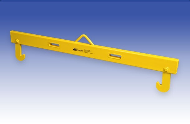 Also enhancing ease of use are standard 5.5 inch wide fork lift carry holes - not on the original model - and a lifting bail welded to the top center of the bar. The bail is made from one inch diameter solid steel bar. Heavy duty lifting hooks are attached at either end of the bar and are cut from one inch thick steel plate. Greater surface contact on the hook pivot points increases durability and reduces wear. When not being used, the hooks are easily pivoted and swung out of the way into a storage cavity built into the lifting bar.