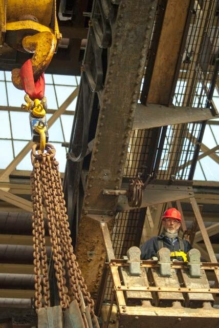 The crane used at The Portsmouth Naval Base Property Trust was a Vaughan 30T with a 5T auxiliary. The loadcell was attached to the crane via twin 10T 2m strops in basket formation through a 30T+ shackle on to the load cell. From the load cell to a 30T+ shackle connected to a double chain spreader to two 15m 10T strops in basket formation around the vessel.